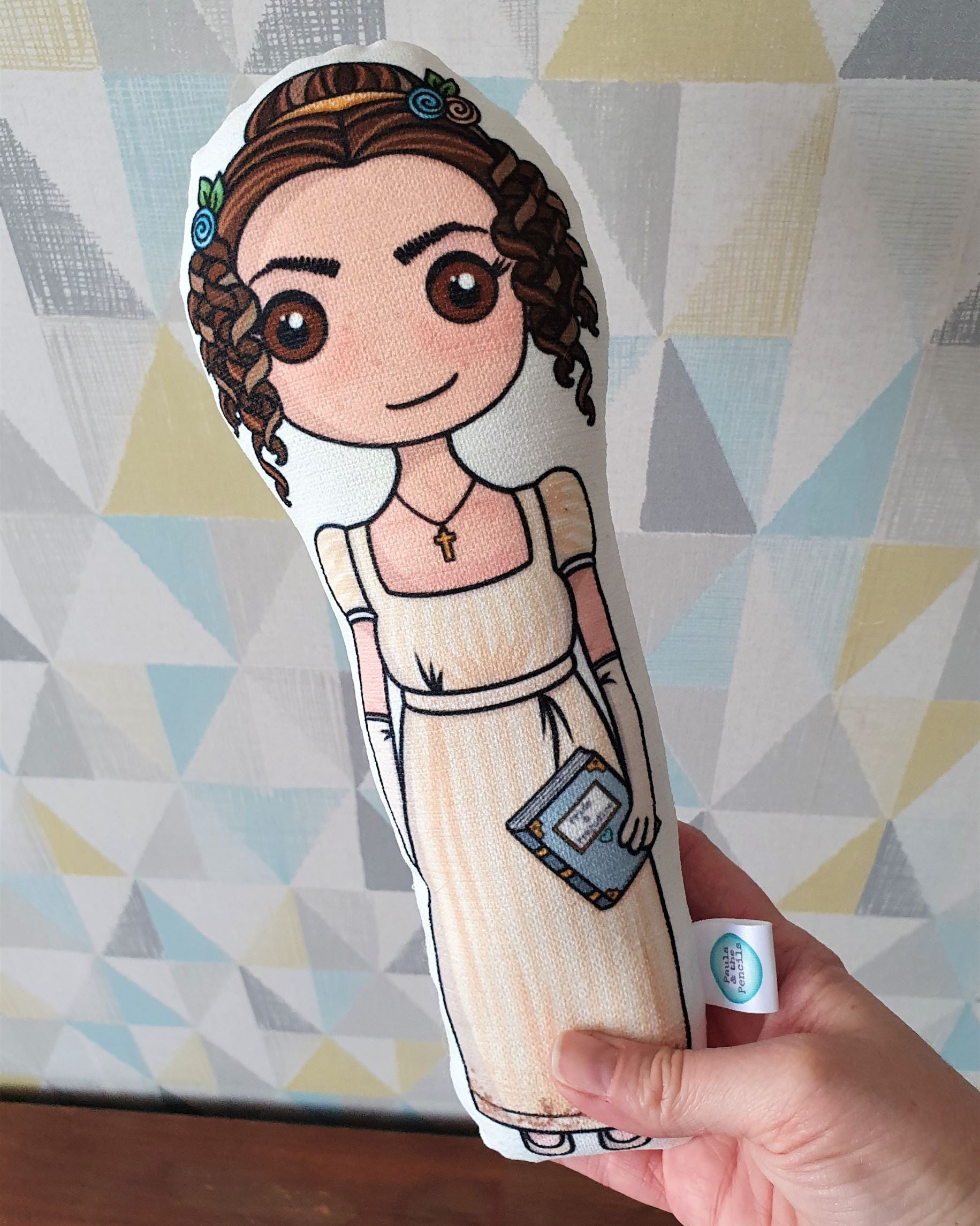 If Elizabeth Bennet from Pride & Prejudice is your favourite literary heroine, then this is the perfect accessory for your bed, sofa or chair. Dressed in her best frock, ready for the Netherfield Ball - but still with her trademark muddy hem!