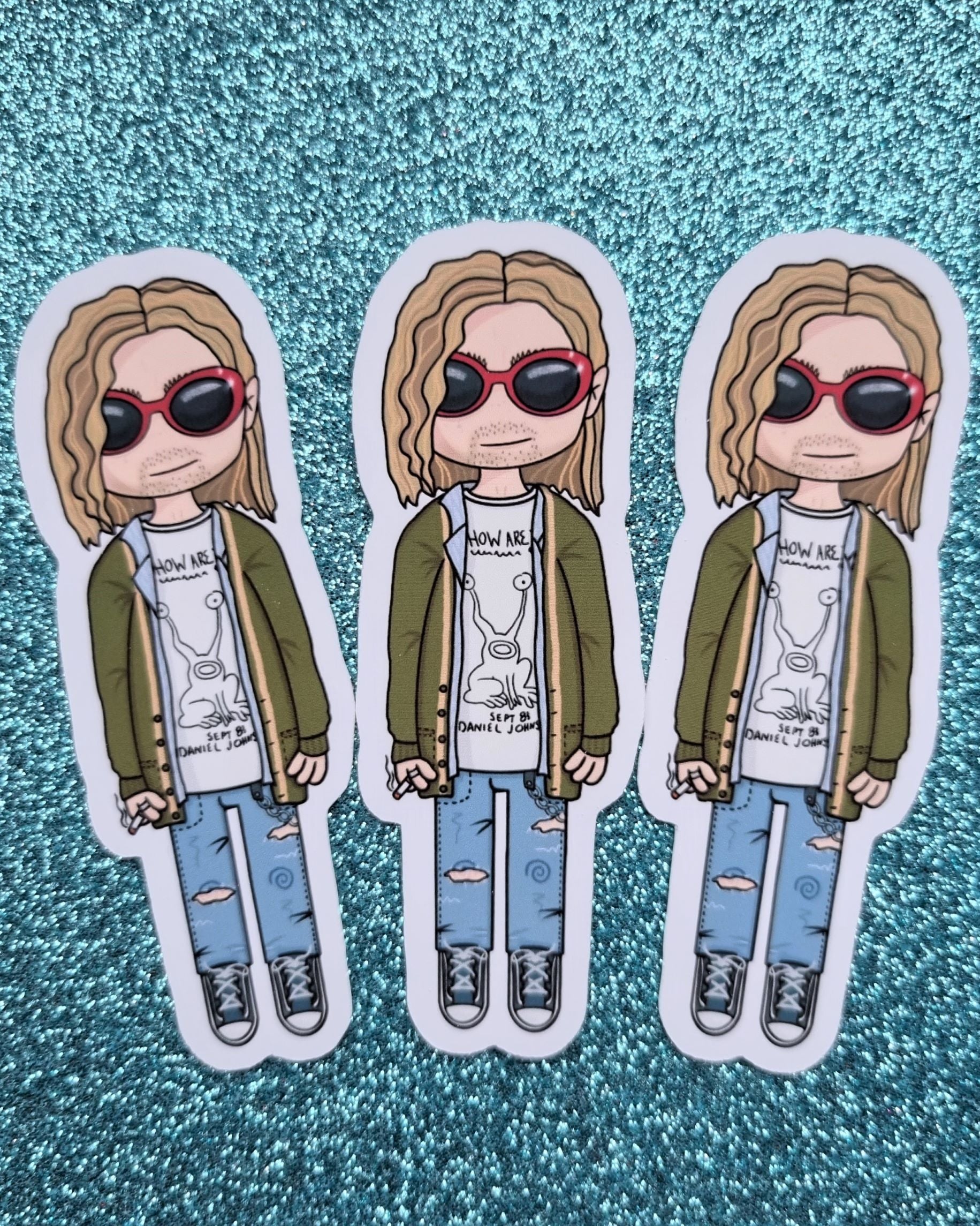 These cute little vinyl stickers are the perfect gift for the Nirvana fan in your life, he's waiting to keep you company on your planner, water bottle, phone or laptop.